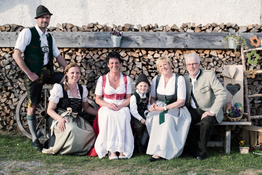 Mit Claudia leben ihr Mann Anton und ihre beiden Söhne Anton und Andreas am Hof. Bei den vielen verschiedenen Arbeiten im Stall, auf dem Feld und in der Direktvermarktung, hilft die gesamte Familie mit. Dazu gehören ihre Eltern Josef und Johanna, Tante Angelika, sowie auch ihre Schwester Sandra die in der Nachbarschaft wohnt.
